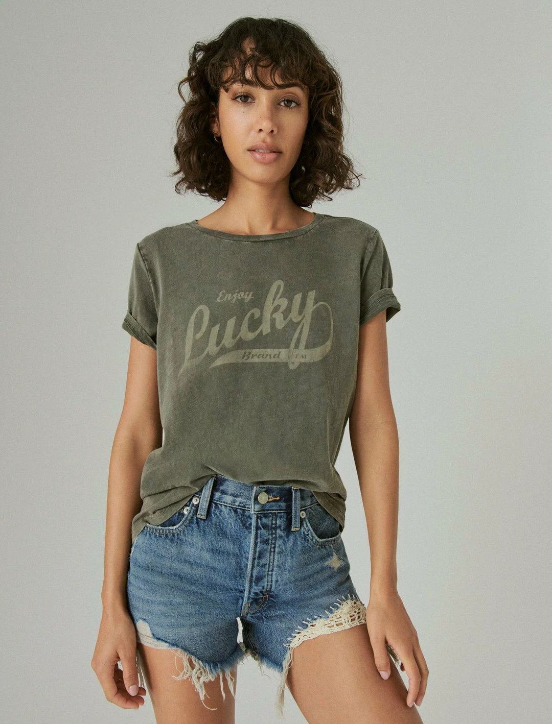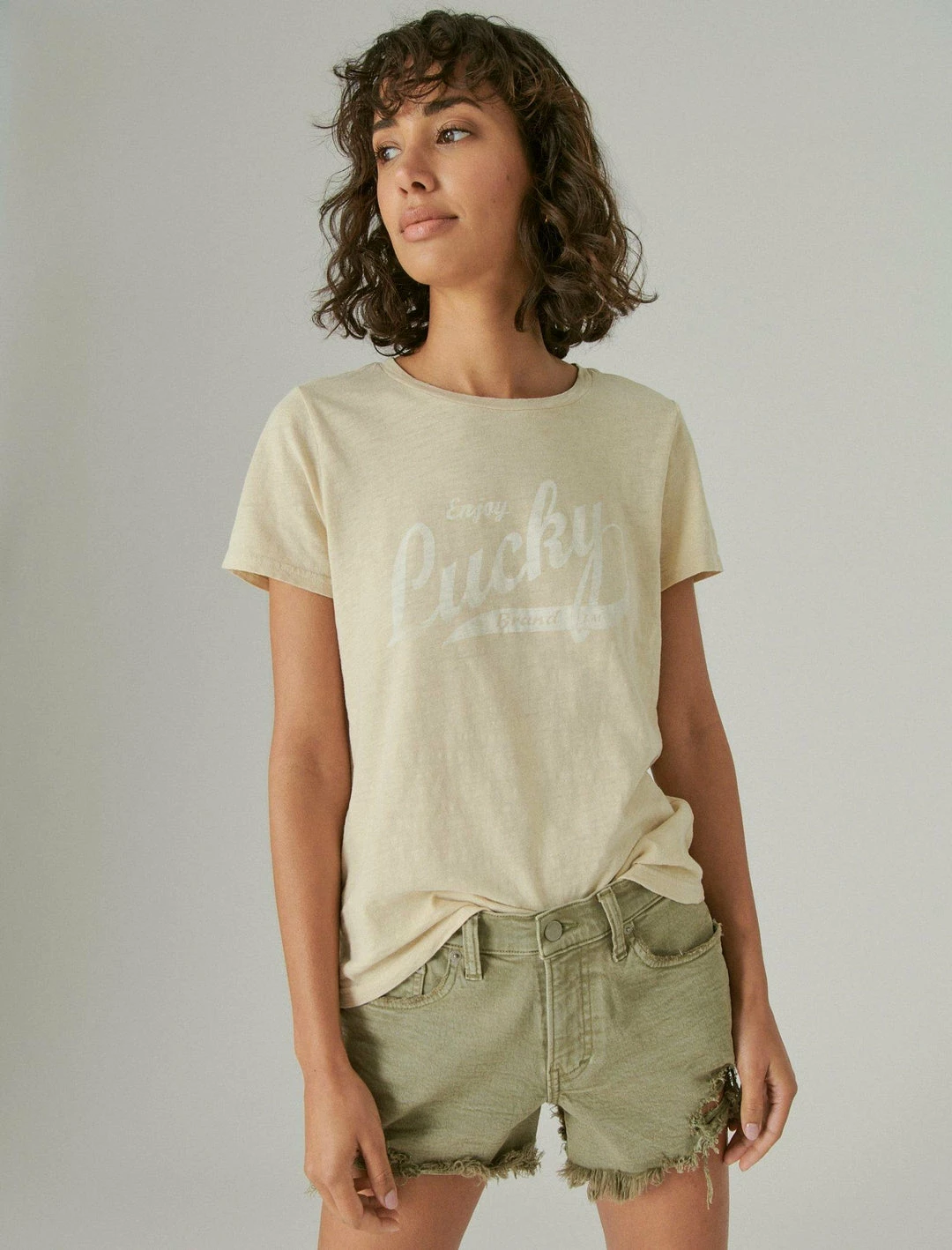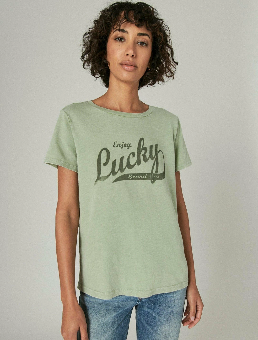 Go classic with this branded crewneck tee made from soft, breathable cotton and featuring a script-style Lucky logo centered at the chest.Crew neck. Short sleeves