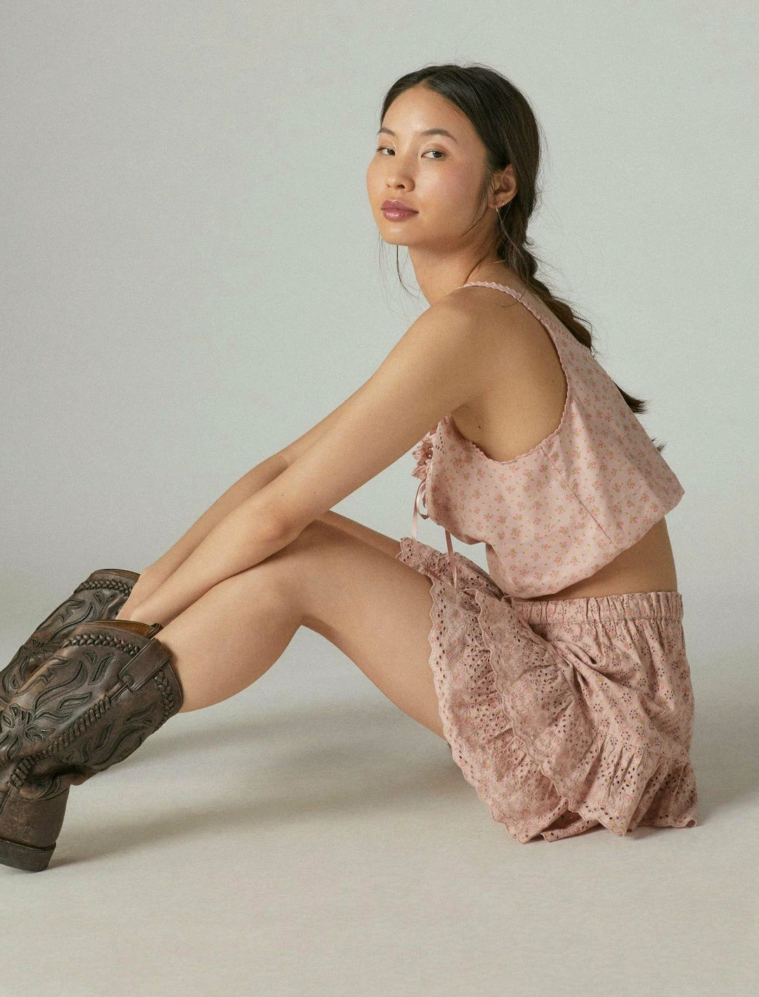 Featured in a tiered ruffle silhouette, this cotton skirt matchback makes for the perfect day-to-night look with allover eyelet detail and flirty floral print throughout, complete with an elastic waistband for ultimate comfort.Elastic waistband