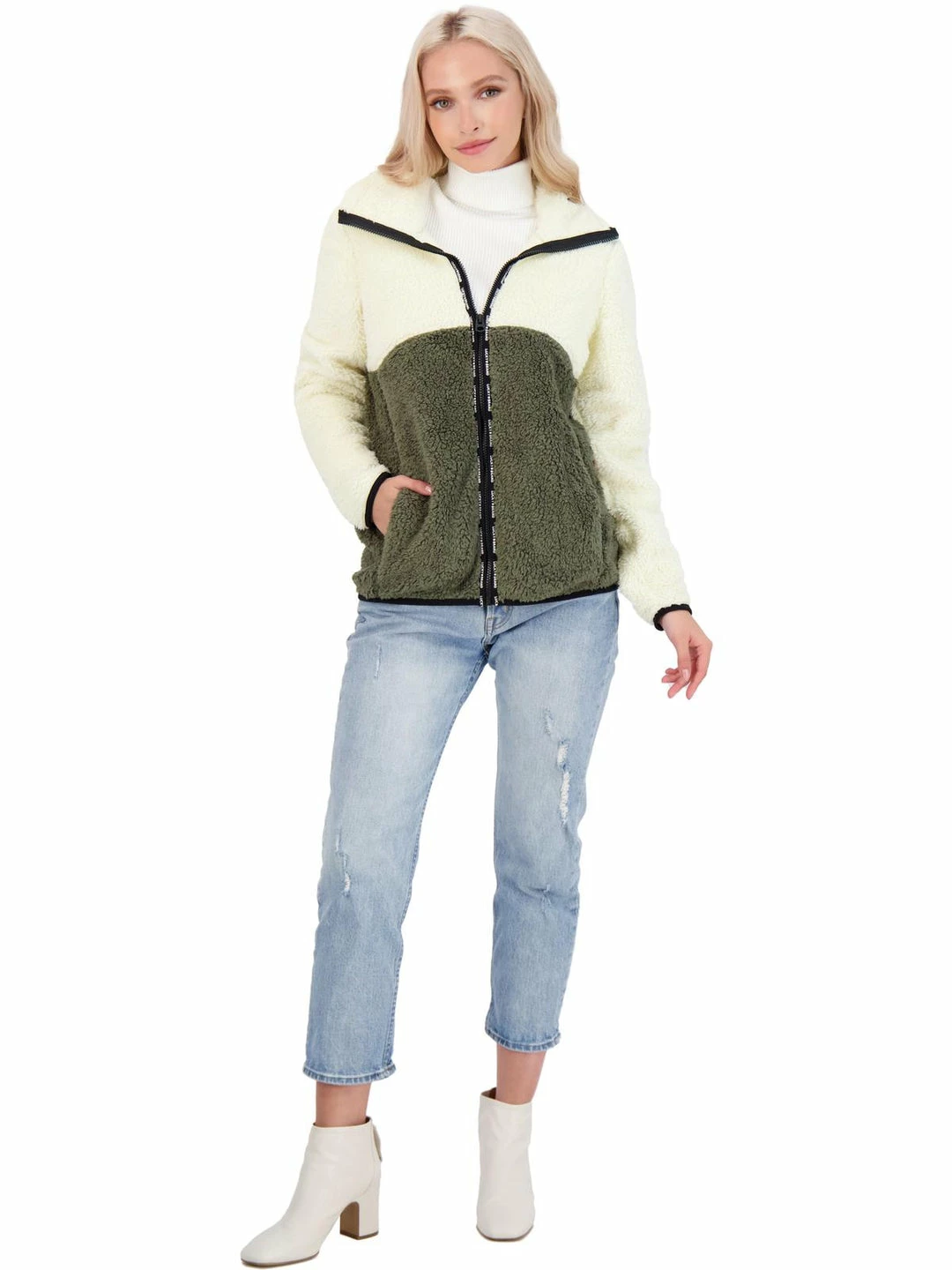 Stay toasty in this faux shearling colorblock jacket by Lucky Brand. Made with 100% polyester. This jacket is crafted with soft faux shearling fabric and a colorblock design. Lightweight and cozy, this jacket will be a go to for everyday wear. It features a stand collar to protect your neck from the cold. Full zipper closure. This jacket is guaranteed authentic.