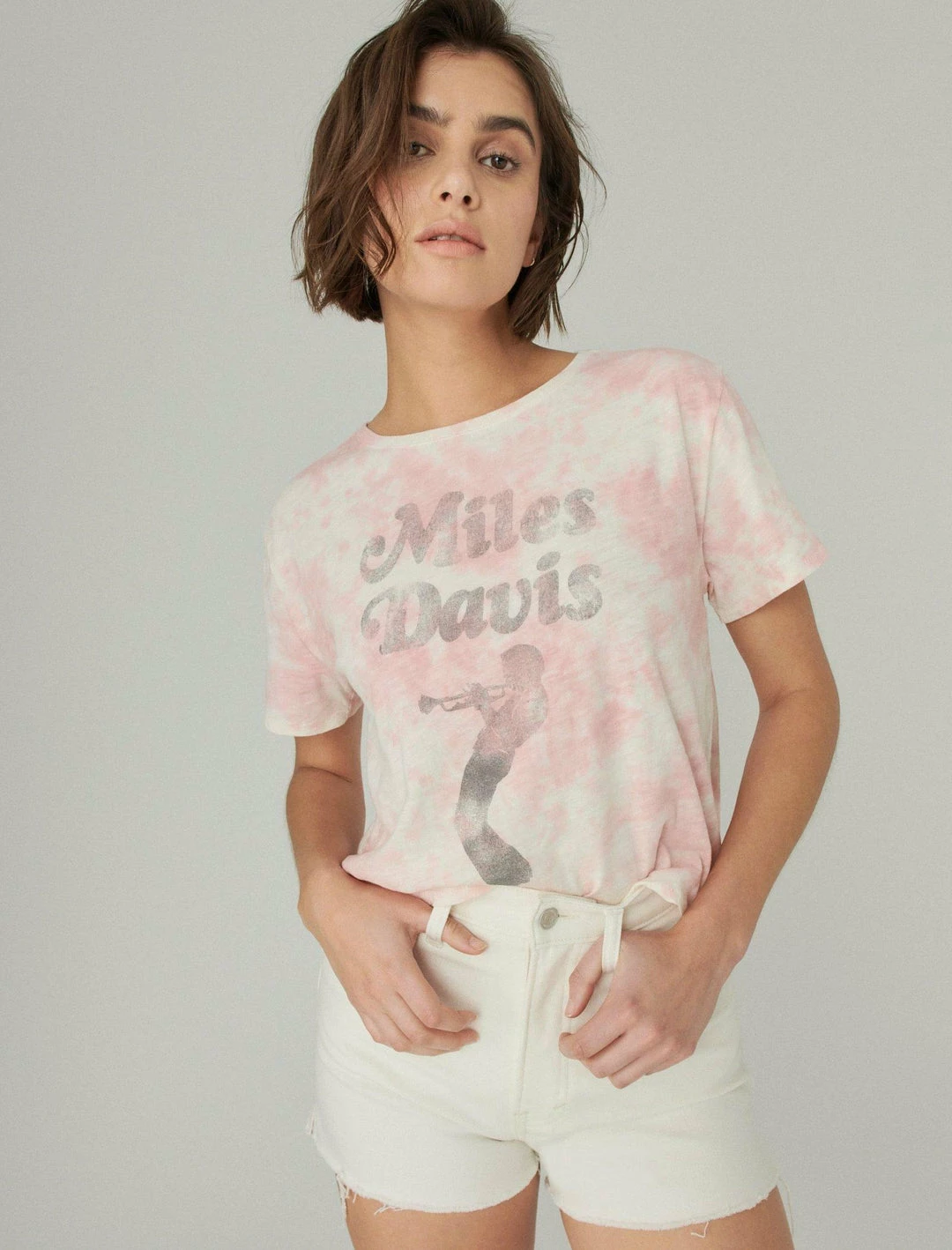 Pay tribute to the influential trumpeter with this vintage-washed crop top, featuring an all-over tie dye print and faded Miles Davis graphic at the front.Crew neck. Short sleeves